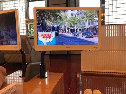 湯上りにテレビ付きのリクライニングチェアでウトウトもできちゃいます・・・