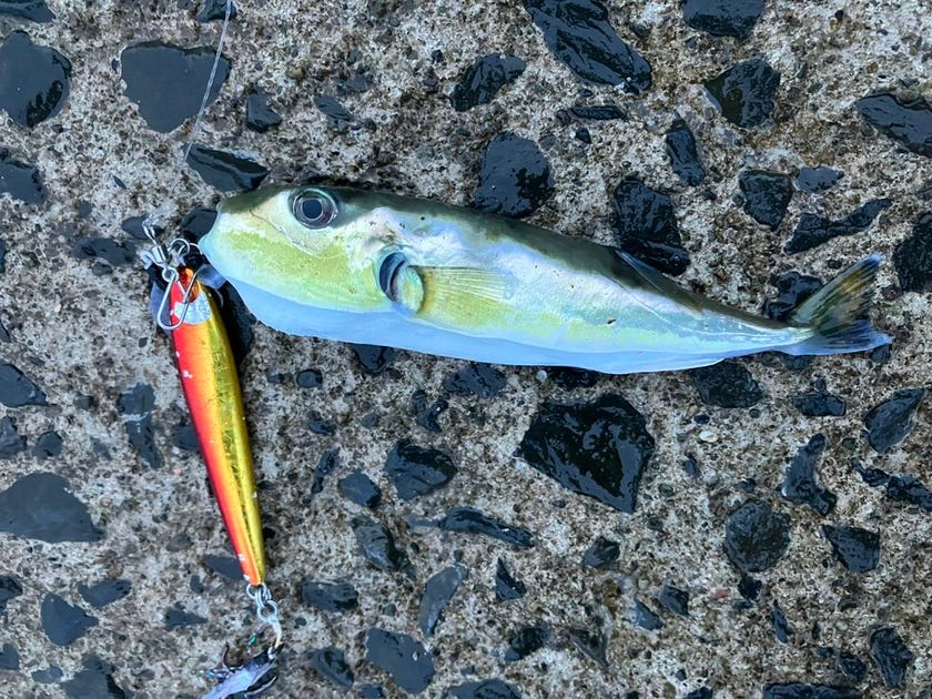 大漁のフグと、ちびメバル・ちびカマスでしたcrying    今日は他の方たちも釣れてませんでした。