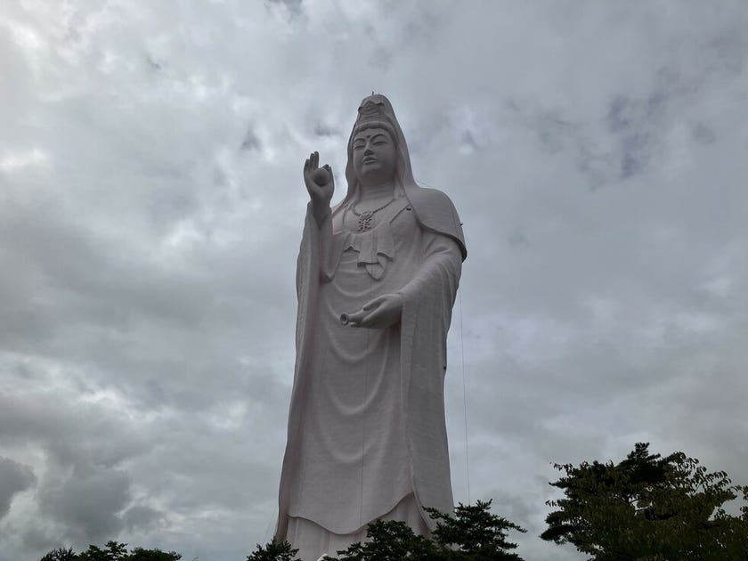 真っ白に塗り変わった綺麗な観音様も楽しみですが、ピンク色も素敵です!