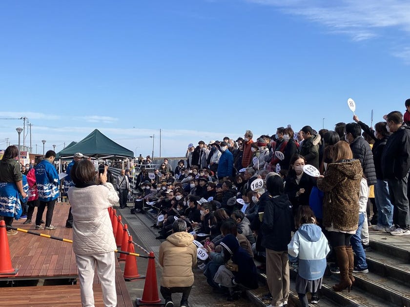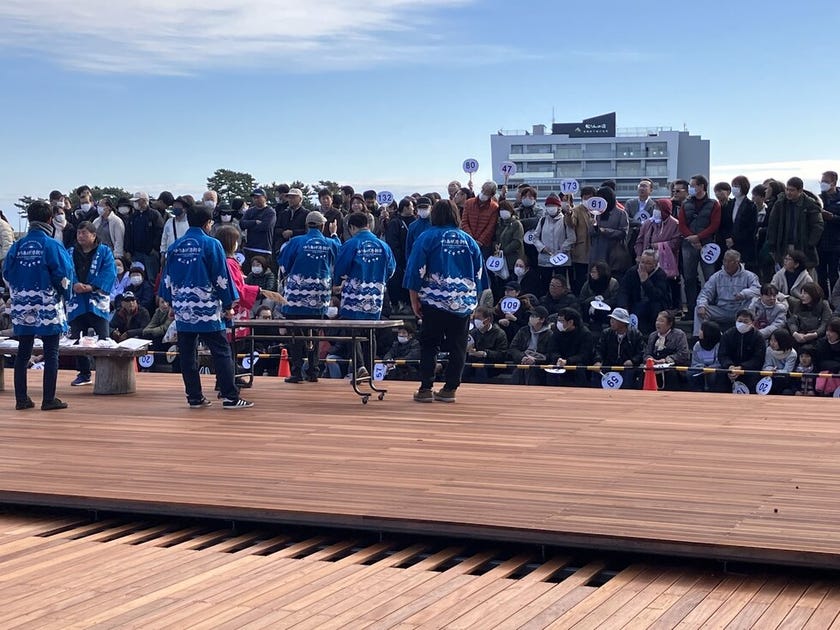 値段がつり上がるのではなく、欲しい商品の時に番号付きのうちわを上げて、呼ばれたらゲット![]()