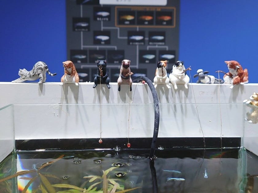 ↓金魚やメダカのいる水槽の上に猫さんが釣りを楽しんでいてかわいいですね😊