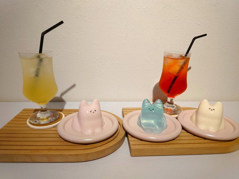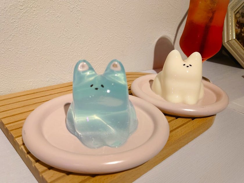 こちらは友人が注文したミルク味の猫プリンとソーダ味の猫ゼリー!
