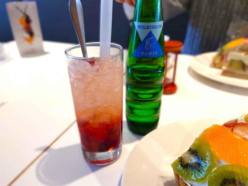 いちごのフルーツソーダも果肉がごろっと入っており甘くて爽やか✨