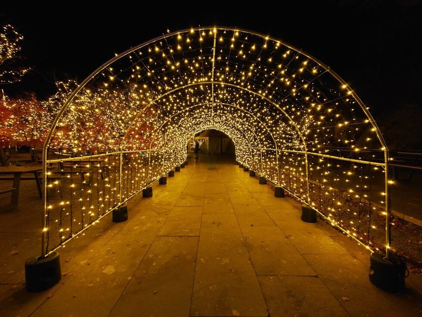 カラフルなライトだけでなくシャンパンゴールド一色に染まる庭園も華やか!