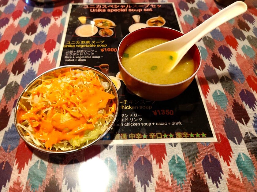 カリカリのナンとちょうどよい辛さのカレーはもちろん、スープとサラダも美味しくいただきました♫