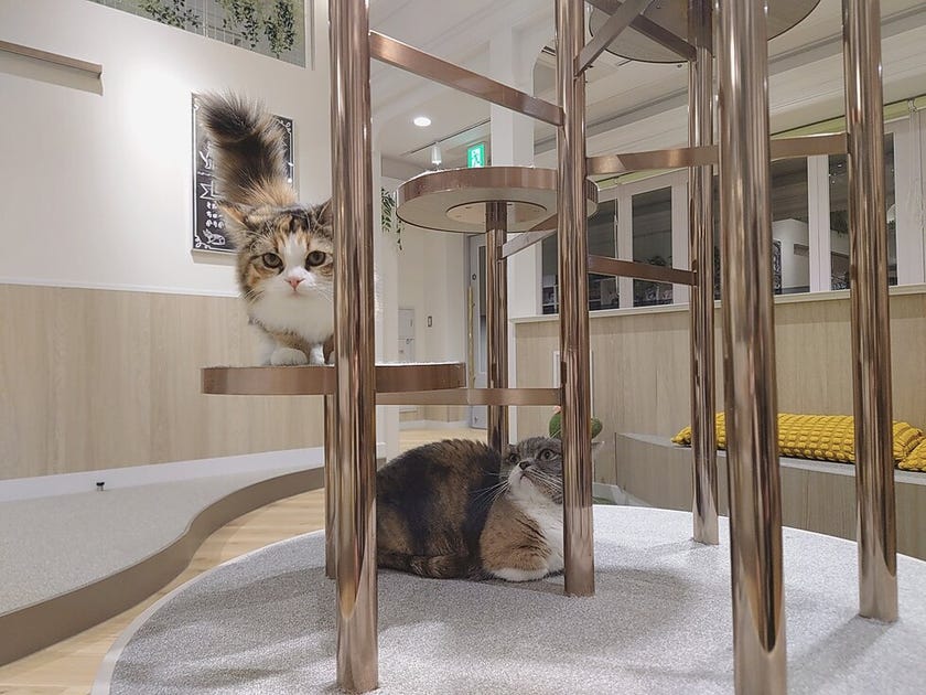 じゃれあっている猫ちゃんや寝ている猫ちゃんなど、思い思いに過ごす猫ちゃんを観察できます😊